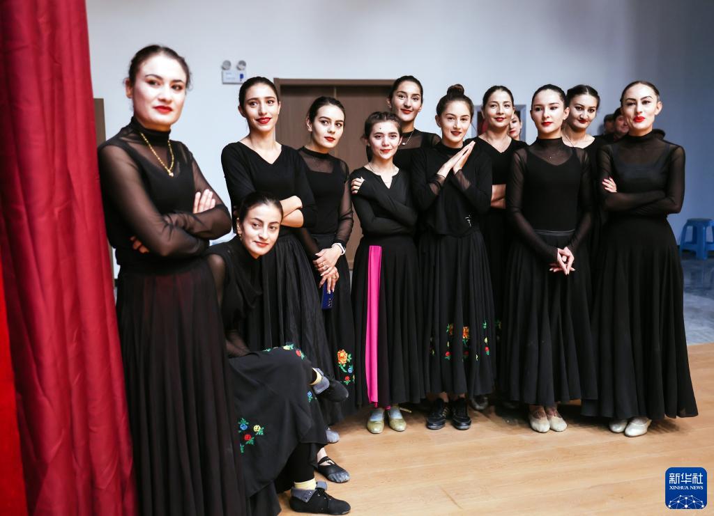 新疆塔縣文工團舞蹈演員在塔縣文化服務中心劇場后臺候場(9月4日攝)。新華社記者 蘭紅光 攝