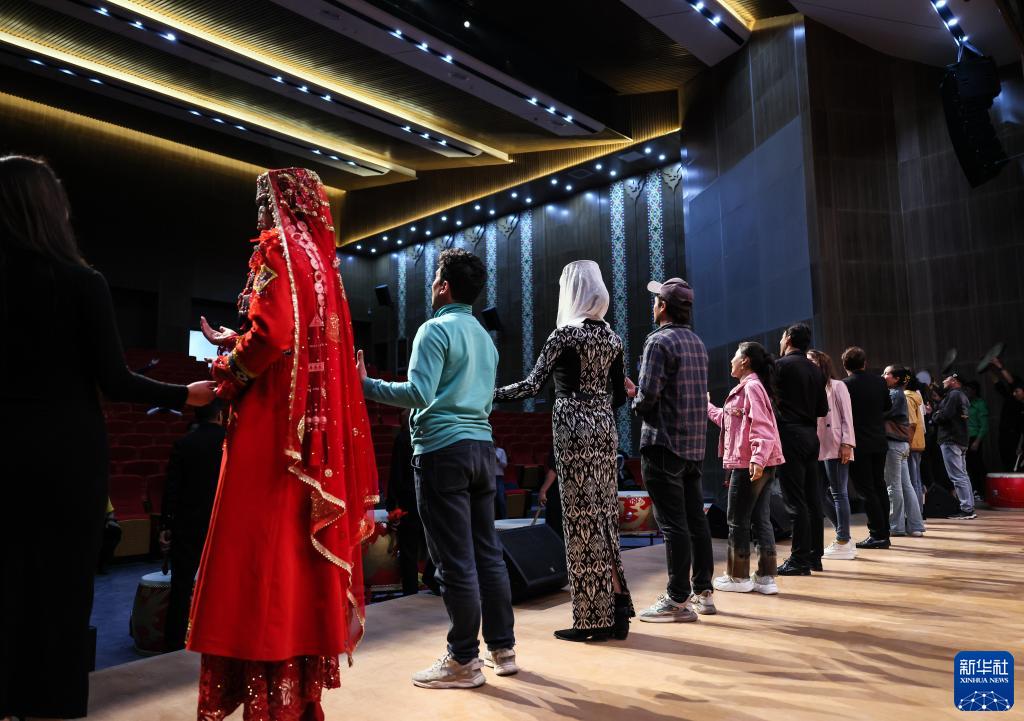 新疆塔縣歌唱演員在排練“帕米爾之聲·2023第二屆國際民族音樂節”晚會節目《我和我的祖國》(9月4日攝)。新華社記者 蘭紅光 攝