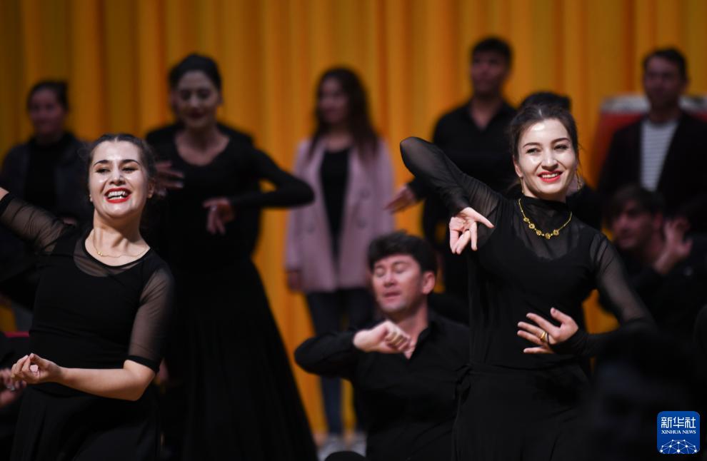 新疆塔縣文工團舞蹈演員在排練鷹舞節目《傳承》(9月4日攝)。新華社記者 王菲 攝