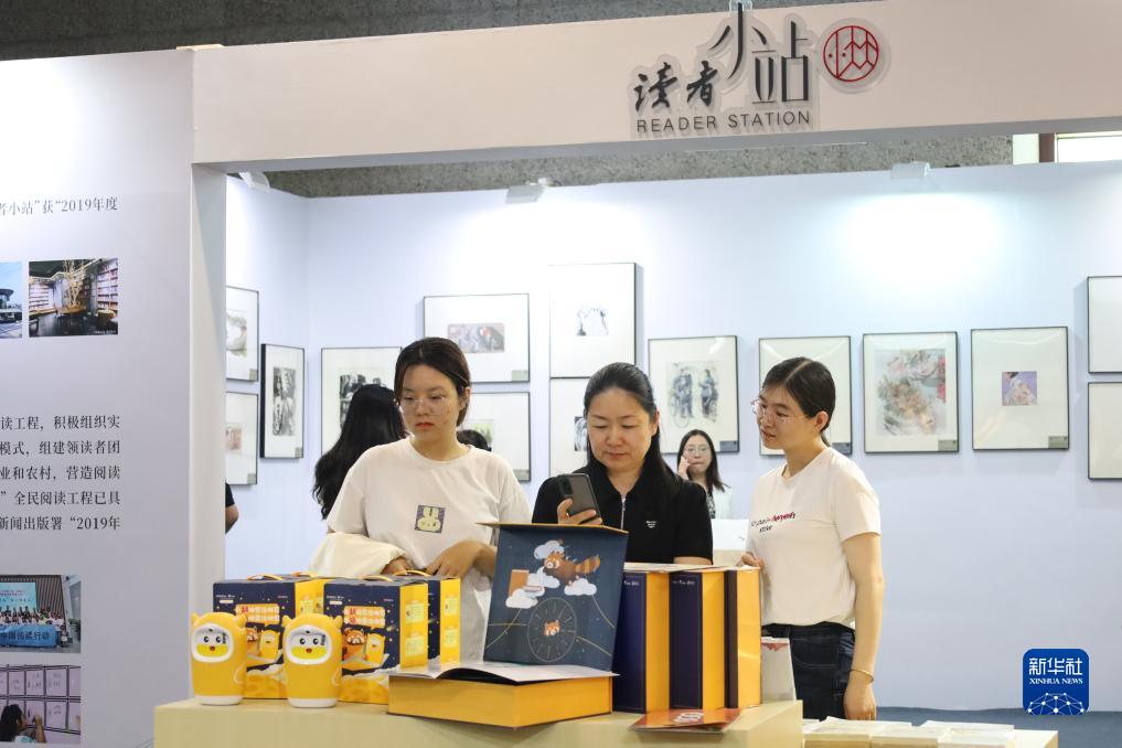 9月7日,觀眾在第六屆絲綢之路(敦煌)國際文化博覽會上參觀《讀者》品牌專題展。