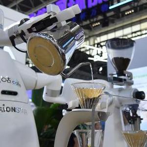 在2023中國國際數字經濟博覽會現場,各種機器人產品亮相展區,吸引觀眾駐足參觀,感受智能機器人的科技魅力。