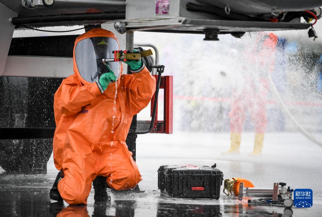 9月8日,參賽隊員在參加危險化學品運輸槽車泄漏處置項目比賽。