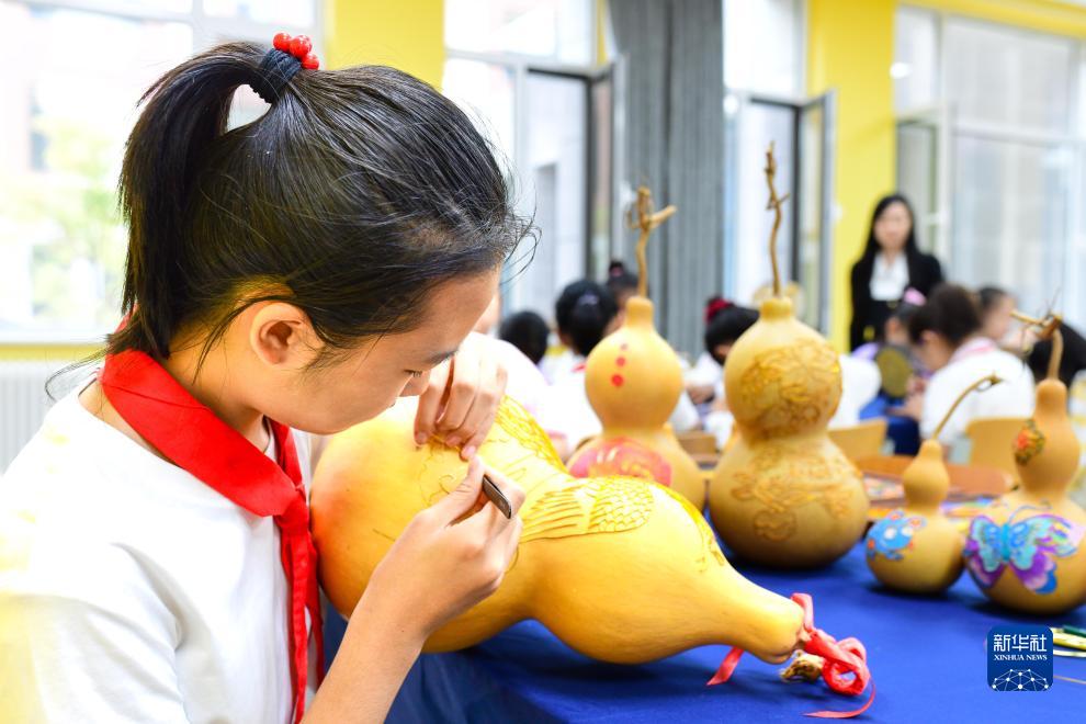 當日,內蒙古鄂爾多斯市康巴什區第八小學舉辦“賽技藝 美童年”主題美術作品創意比賽,學生創作景泰藍、瀝粉畫、泥塑等美術作品,展現藝術巧思與創意。近年來,康巴什區通過“一校一品”特色課堂建設,將美術、音樂、戲曲等納入課后服務內容,讓優秀傳統文化浸潤童心,助力學生健康快樂成長。