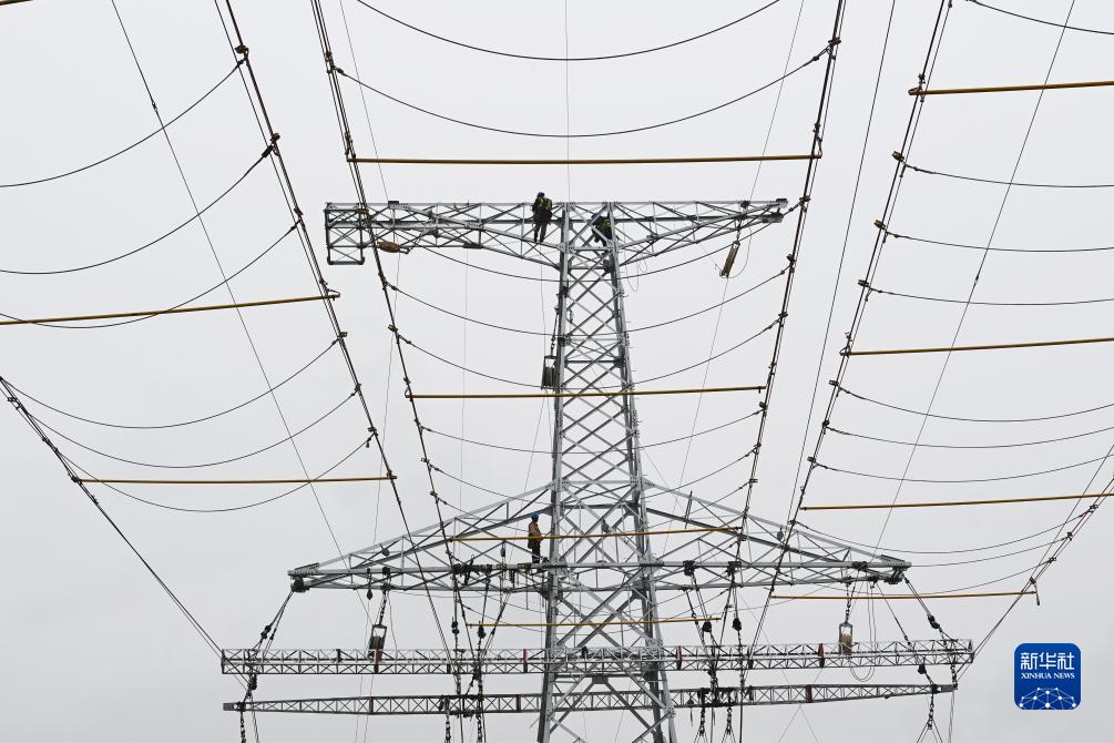 9月8日,工人在武威市天??h境內的蘭新(張)三四線甘肅牽引站330千伏外部供電工程施工現場作業。