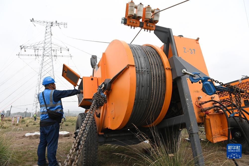9月8日,工人在武威市天??h境內的蘭新(張)三四線甘肅牽引站330千伏外部供電工程施工現場作業。