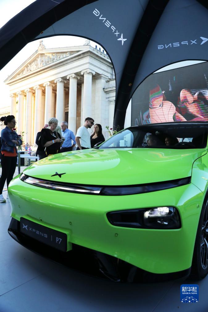 9月5日,人們在德國慕尼黑國際車展城市公共展示區的小鵬展區參觀。