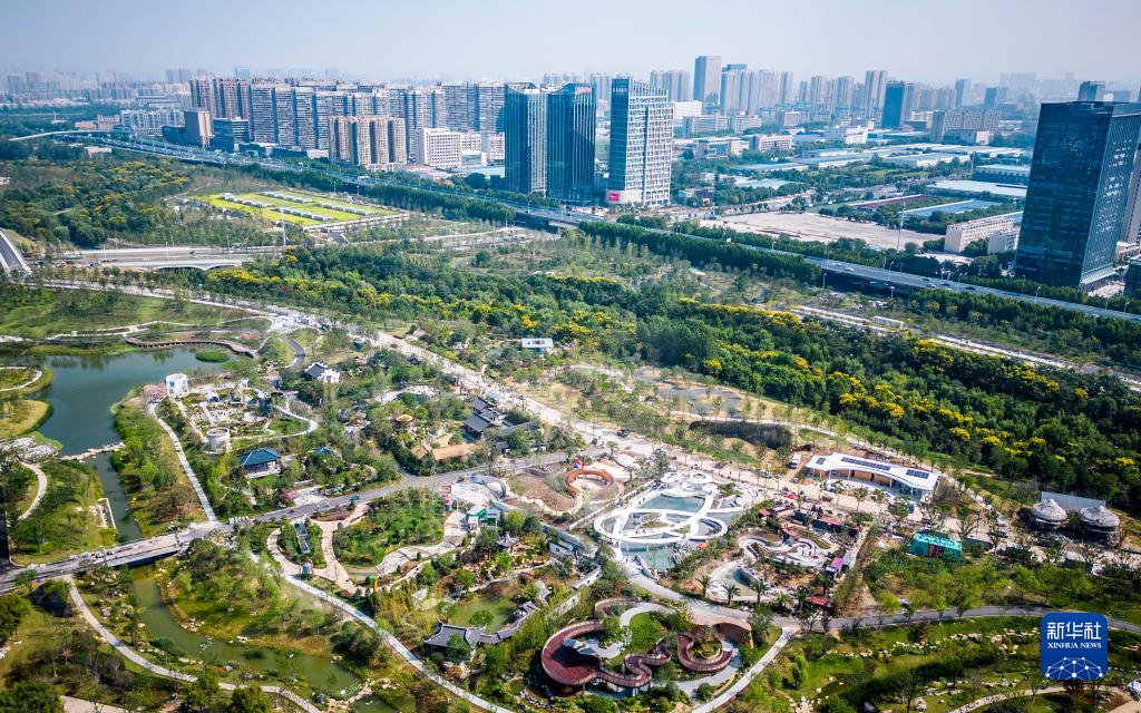 9月8日拍攝合肥園博園中的城市園(無人機照片)。
