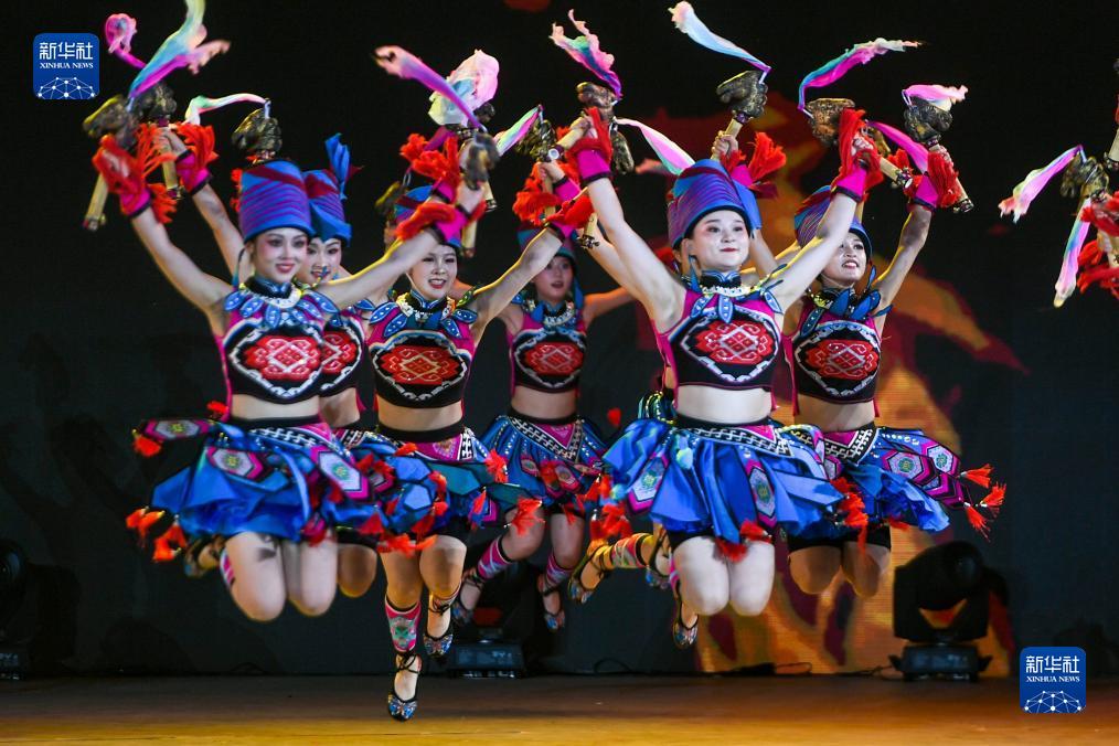 9月8日,表演團隊在演出廣場舞《銅鈴舞起來》。