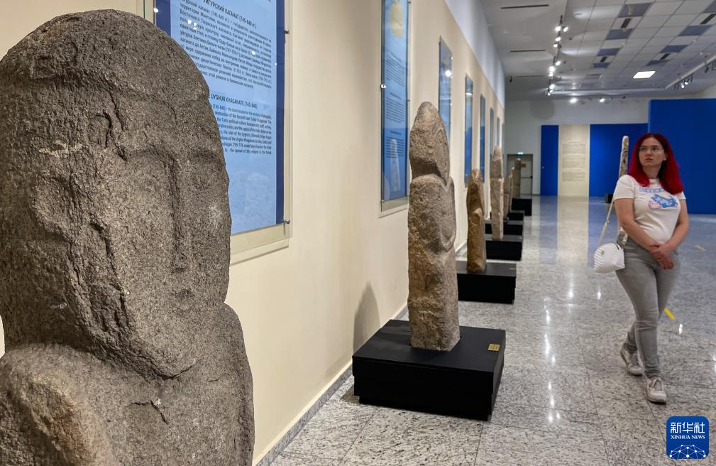 9月8日,一名女子在位于哈薩克斯坦首都阿斯塔納的哈薩克斯坦國家博物館內參觀。