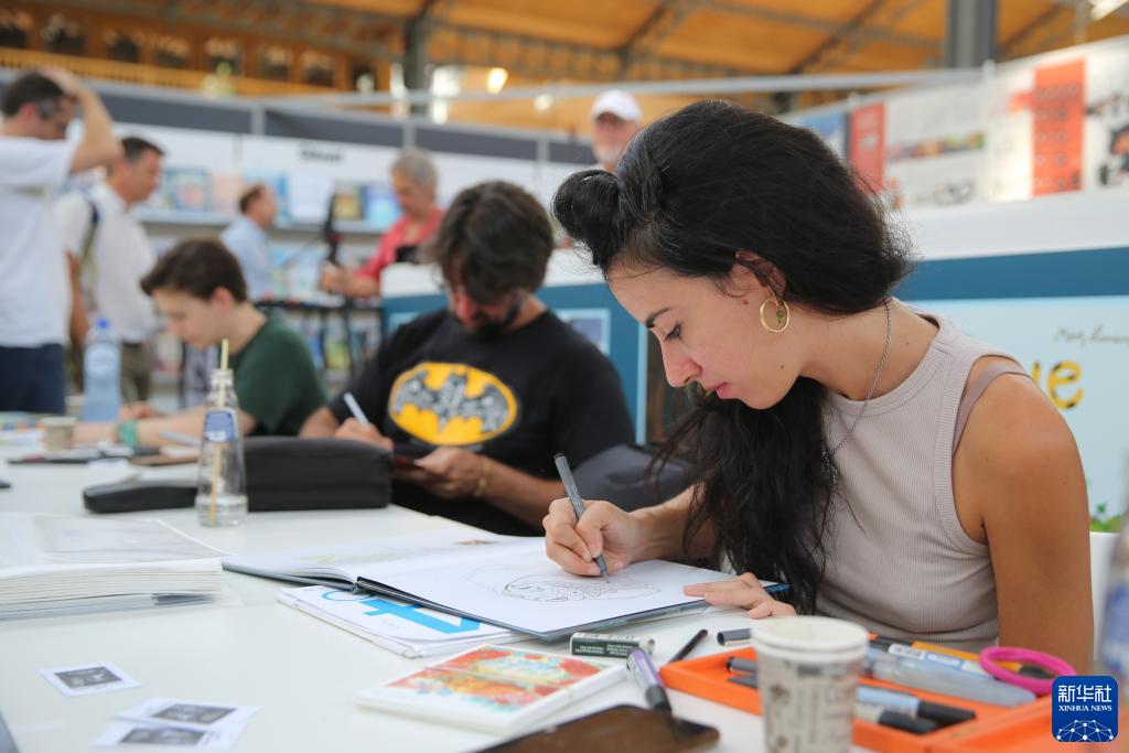 9月8日,漫畫作者在比利時布魯塞爾漫畫節上現場作畫。
