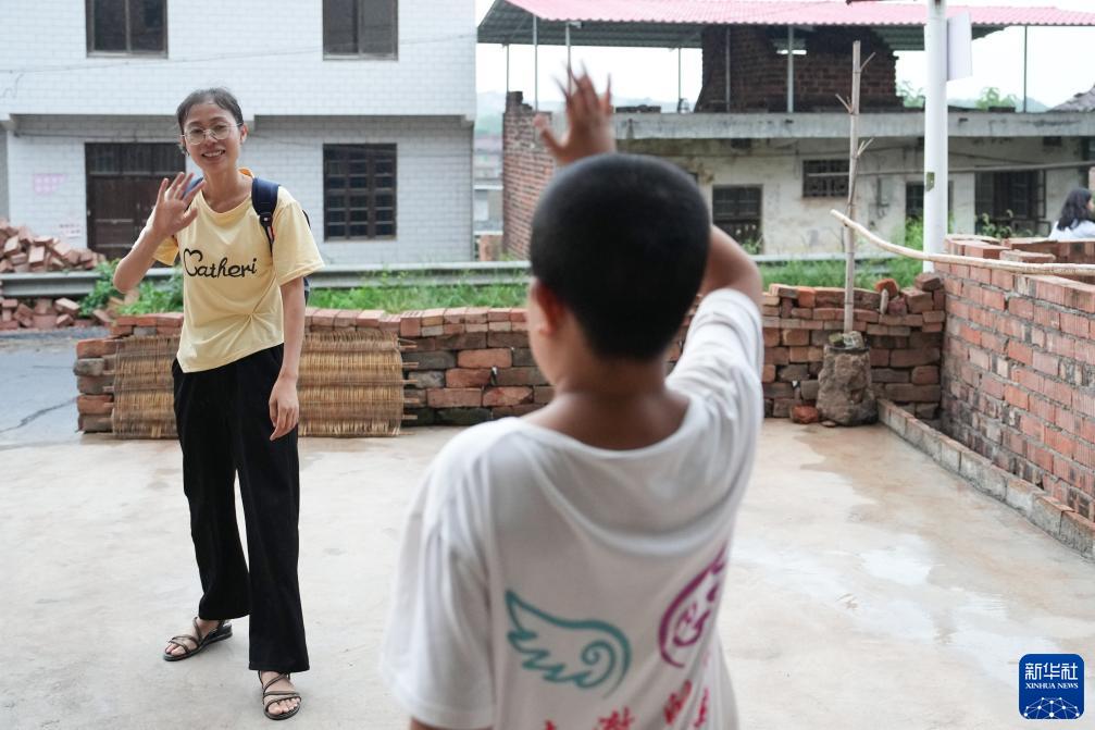 9月6日,陳艷輝在湖南省株洲市茶陵縣界首鎮花甲村的小宇家中送教結束后與小宇道別。新華社記者 薛宇舸 攝