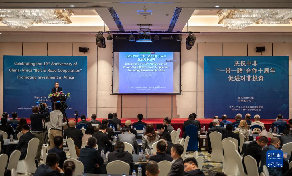 這是9月8日在埃塞俄比亞首都亞的斯亞貝巴拍攝的“慶祝中非‘一帶一路’合作十周年暨促進對非投資”主題會議現場。