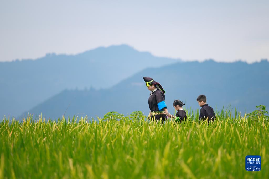 柳吉小學教師王章艷(左)在去往學生龍運平(右)和龍運凡家中家訪的路上(9月7日攝)。