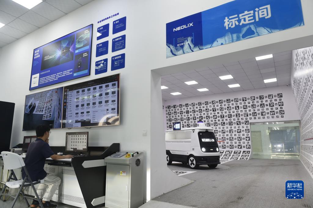 9月8日,河南省安陽市安陽縣一家無人車制造企業的工作人員在車間內作業。