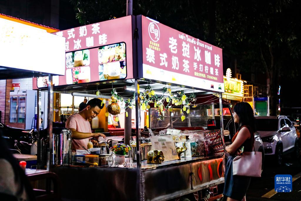 9月8日,市民在廣西南寧的夜市上購買東南亞特色飲品。
