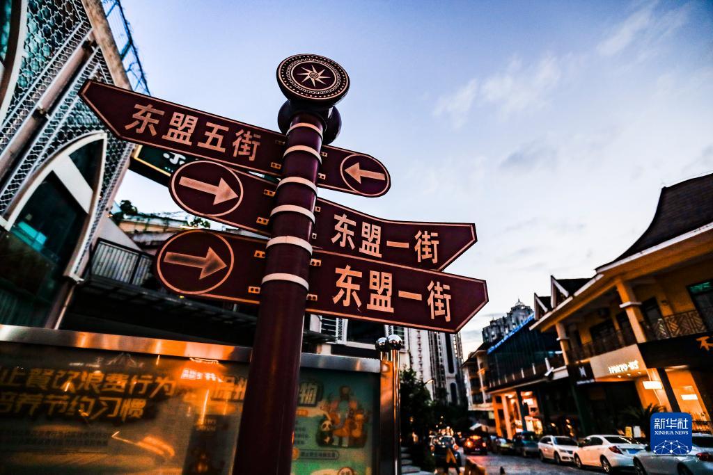 這是9月7日在廣西南寧拍攝的東盟商務區里的路標。