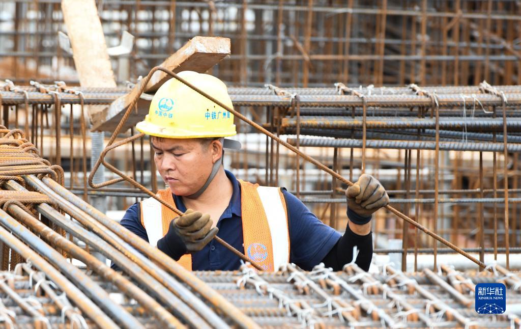 9月9日,工人在??谛潞8酆湍细邸岸€口岸”(貨運)集中查驗場所建設項目上施工作業。