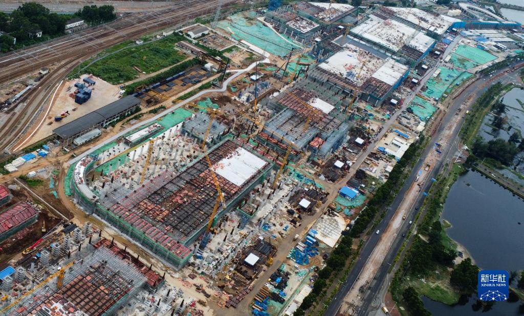 這是9月9日拍攝的??谛潞8酆湍细邸岸€口岸”(貨運)集中查驗場所建設項目(無人機照片)。