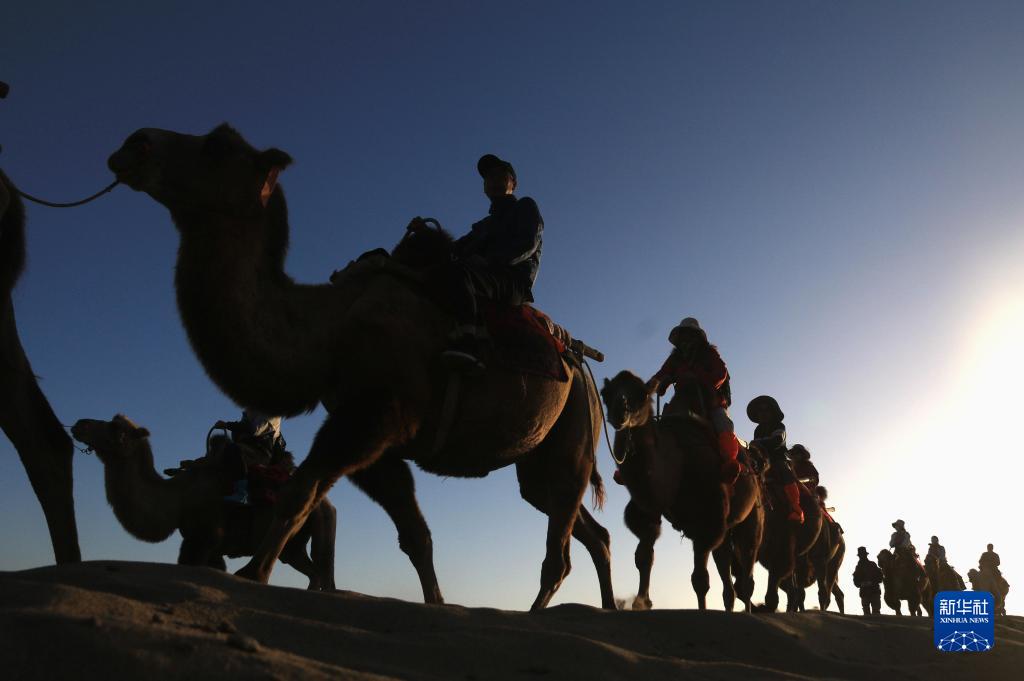 9月9日,游客在甘肅省敦煌市鳴沙山月牙泉景區游覽。