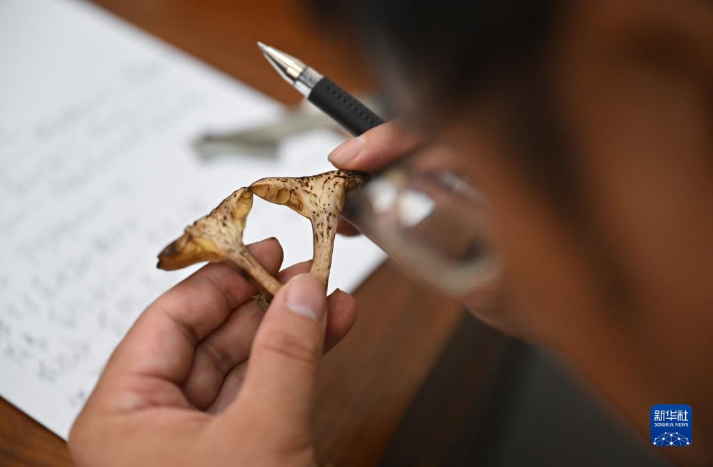 9月5日,曾念開對變紅褶孔牛肝菌新鮮標本進行特征記錄。