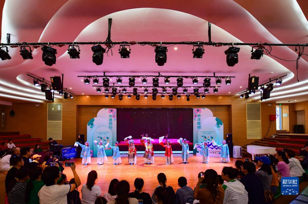 當日,內蒙古鄂爾多斯市康巴什區青少年發展中心舉辦“唱京劇 潤童心 ”主題活動,來自該中心京劇團的小演員先后表演了《梨花頌》《三家店》等10余個經典京劇選段,展現京劇藝術的魅力。近年來,康巴什區青少年發展中心與域內各中小學通過社團共建、名家示范、專業輔導等方式教授學生學習京劇表演技藝,持續助力京劇進校園活動,為孩子們感受京劇文化,傳承京劇藝術創造條件。