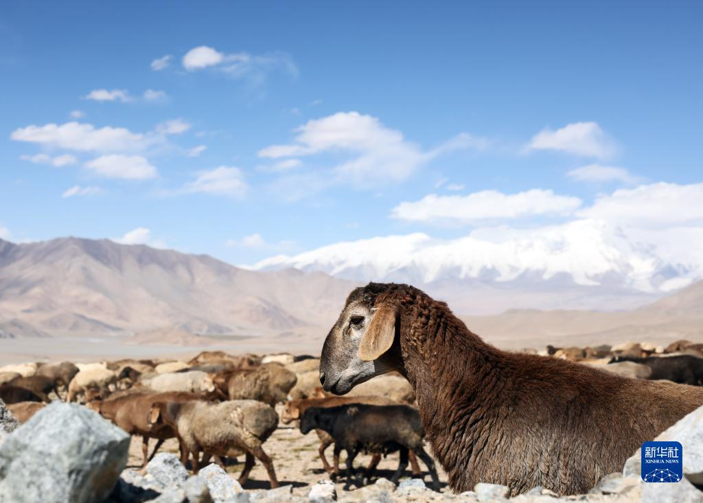 在“冰川之父”慕士塔格峰腳下,新疆塔什庫爾干塔吉克自治縣塔合曼鄉境內的一片天然草場吸引周邊鄉村的牧羊人在此放牧。進入秋季以來,草場漸漸泛黃,屹立于遠處的慕士塔格峰和公格爾九別峰在藍天白云的映襯下格外壯美,一幅寧靜悠遠的牧羊圖引人入勝。
