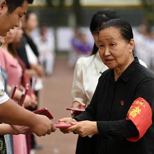 清晨六點多,年過七旬的天津市津英中學校長張慧穎早早站在學校大門口,用微笑迎接學生的到來。她衣著樸素大方,手臂上掛著醒目的袖標,在一聲聲“同學,你好!”的問候中開啟學校新的一天。