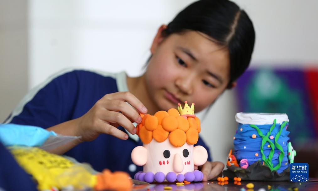 9月9日,在山東省樂陵市開元中學,學生用黏土制作筆筒。新華社發(李志軍 攝)