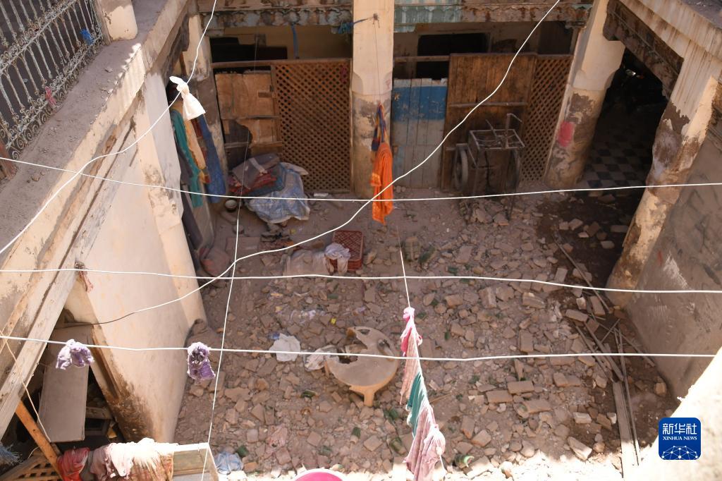 這是9月9日在摩洛哥南部城市馬拉喀什拍攝的受損建筑。