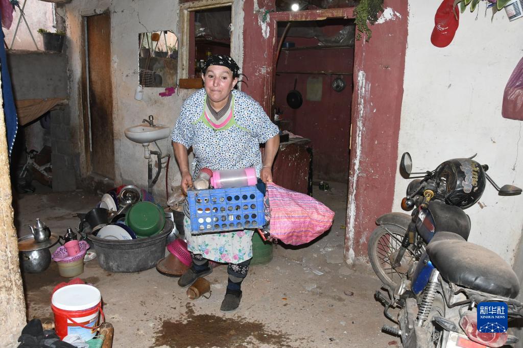 9月9日,在摩洛哥馬拉喀什附近,居民在家中進行清理善后工作。