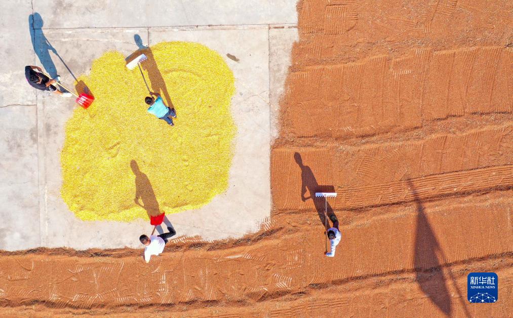 初秋時節,各地農民搶抓晴好天氣忙著搶收、搶曬,勾勒出一幅幅美麗的田園風光和繁忙的勞動景象。