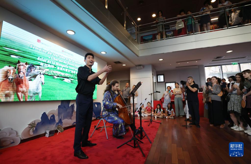 9月9日,在法國巴黎中國文化中心,演員為觀眾表演歌曲《鴻雁》。