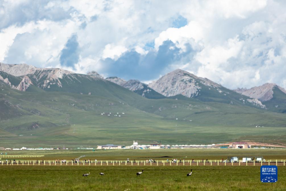 這是8月22日在四川省阿壩藏族羌族自治州若爾蓋縣花湖拍攝的黑頸鶴,目前黑頸鶴種群數量突破2000只。