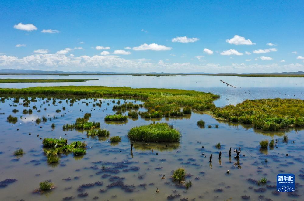這是8月22日在四川省阿壩藏族羌族自治州若爾蓋縣拍攝的花湖(無人機照片)。