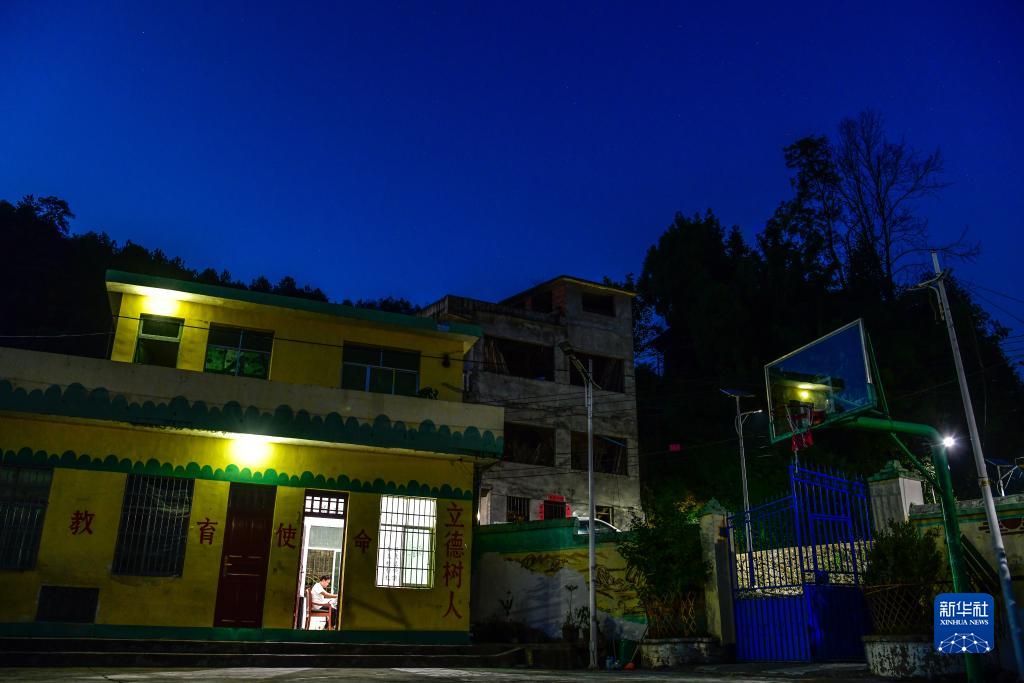 陸成文在巖腳教學點的辦公室里寫教案(9月6日攝)。
