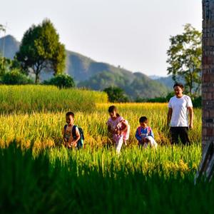 路在山腰盤旋,海拔逐漸上升。到了山間,一塊平地豁然開朗,梯田層疊,稻谷金黃,巖腳教學點出現在眼前。