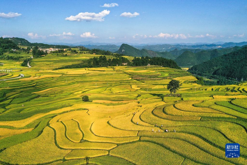 陸成文帶領學生在學校后山的臘利梯田寫生(9月6日攝,無人機照片)。