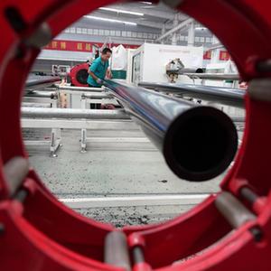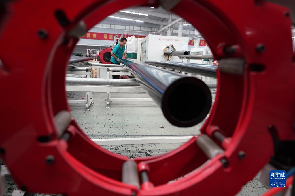 9月10日,河北省柏鄉縣一家管材生產科技型企業的工人在生產線上工作。