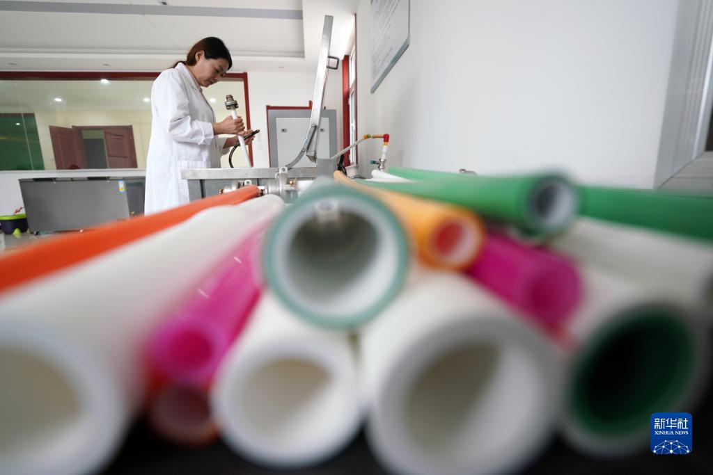 9月10日,河北省柏鄉縣一家管材生產科技型企業的研發人員在實驗室工作。