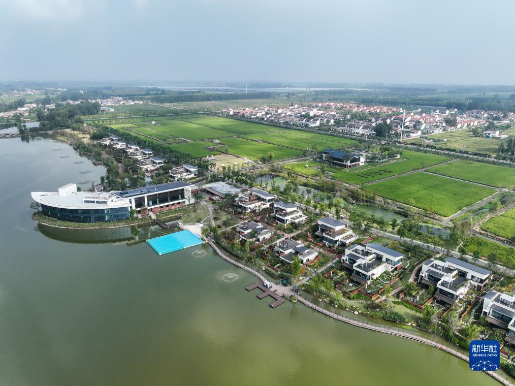 9月9日拍攝的宿遷市宿城區蔡集鎮牛角村歡樂田園度假區(無人機照片)。
