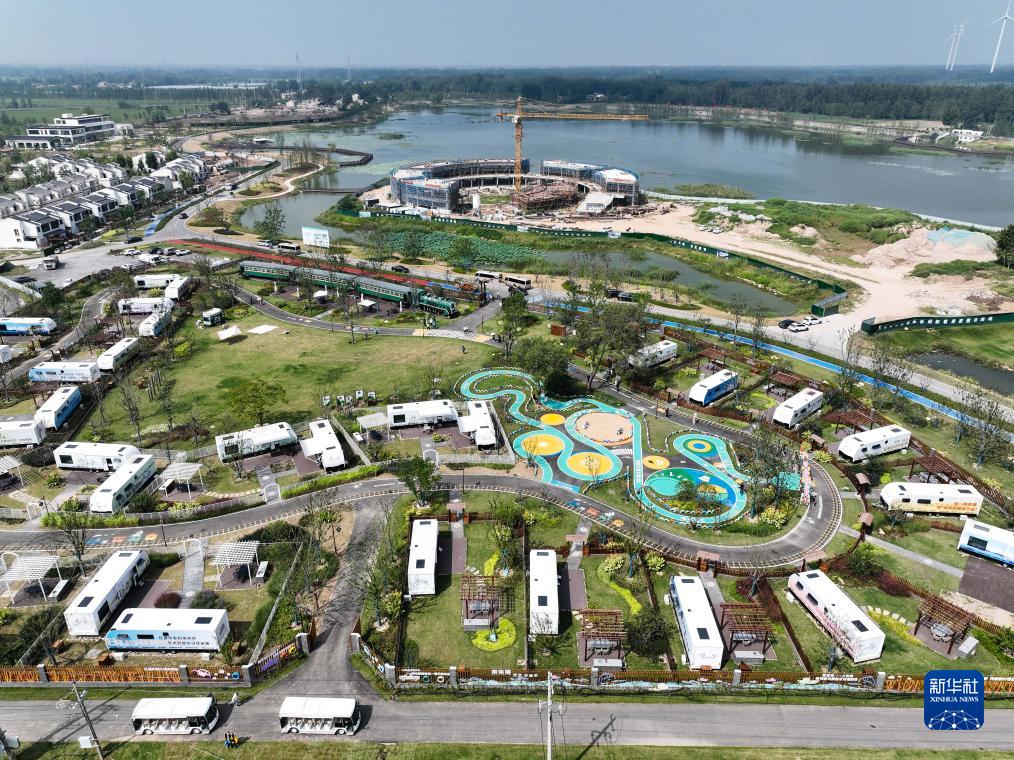 9月9日拍攝的建設中的宿遷市宿城區朱??叼B旅游度假區(無人機照片)。
