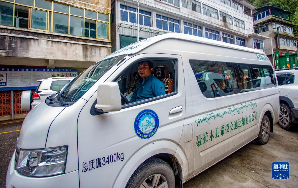 駕駛員旦增尼瑪運營的旅游車負責接送中國游客往返樟木口岸與聶拉木縣城(9月9日攝)。樟木口岸恢復客運功能后,他每天都要在這條線路上跑4、5個來回。