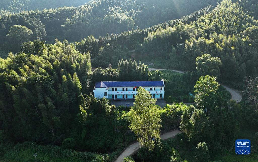山林環抱的江西省高安市華林山鎮中心小學朱家教學點(9月4日攝,無人機照片)。