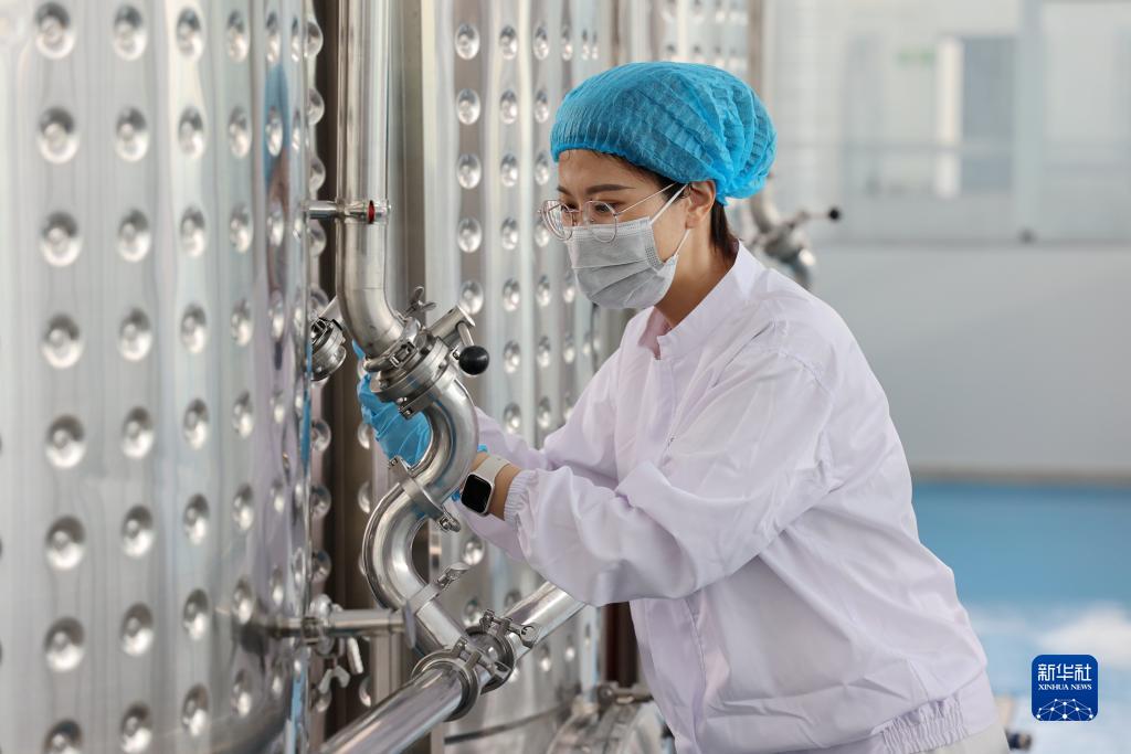 9月9日,在山東省樂陵市一家健康食品研發企業車間,工作人員對黑化金絲小棗棗酒發酵過程進行監視。