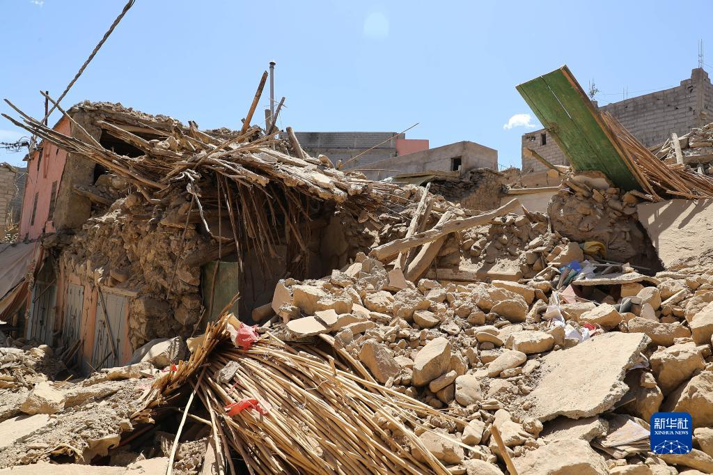 這是9月10日在摩洛哥震中附近的艾米茲米茲村拍攝的損毀的房屋。
