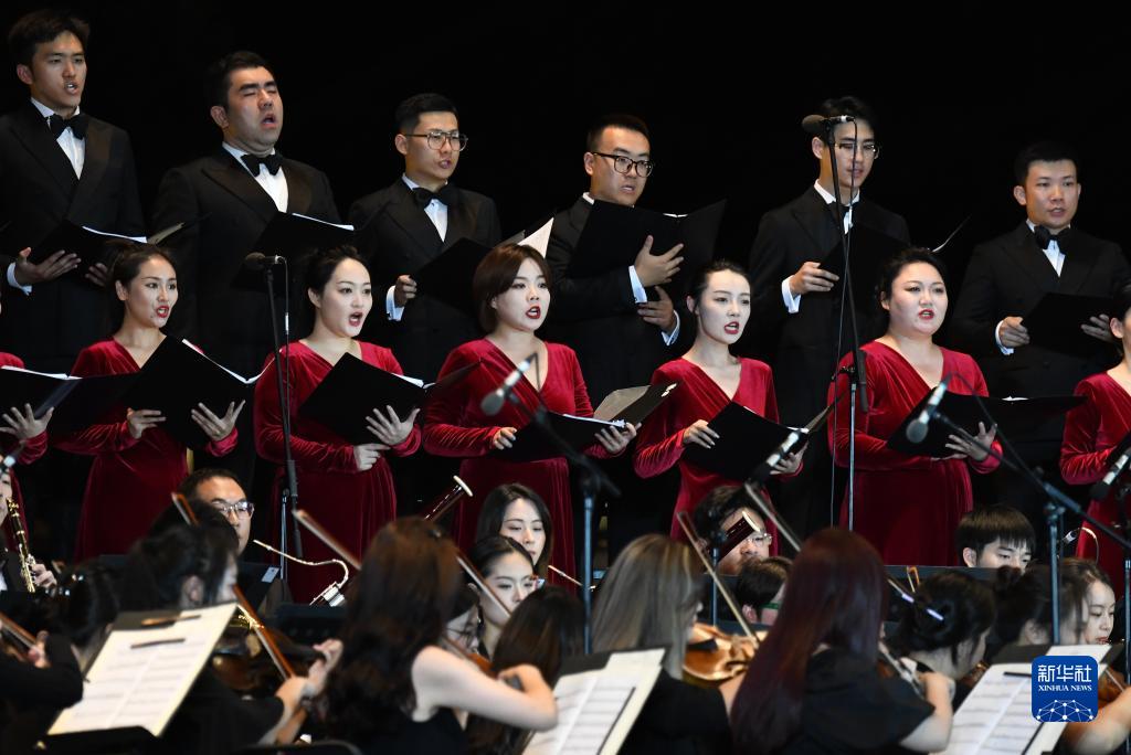 9月10日晚,西安交響樂團合唱團在西安大雁塔北廣場戶外公演。