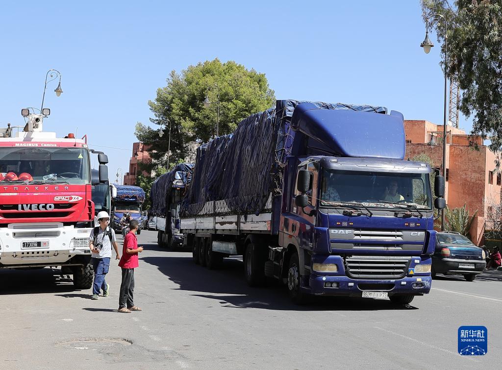 這是9月10日在摩洛哥震中附近的艾茲魯村拍攝的救援車輛。