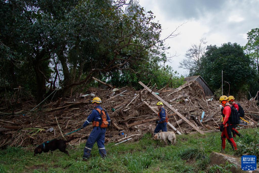 9月10日,消防員在巴西南里奧格蘭德州科利納斯市搜尋失蹤者。