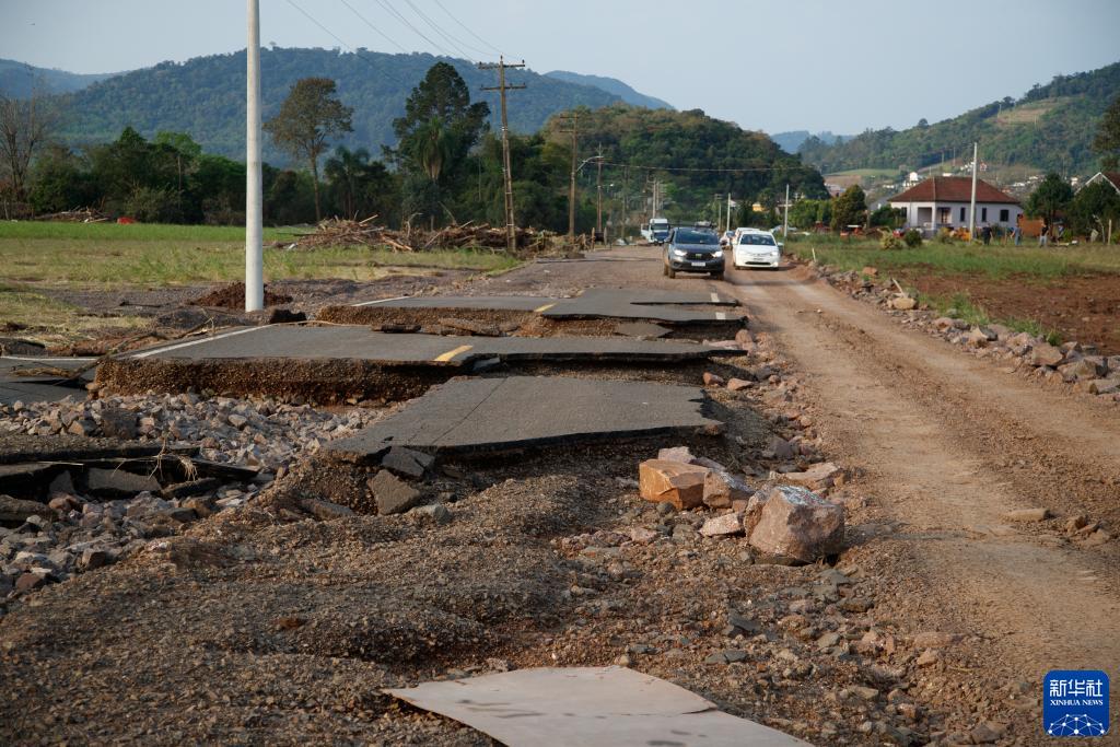 這是9月10日在巴西南里奧格蘭德州科利納斯市拍攝的被洪水摧毀的道路。