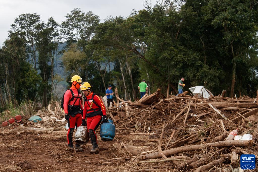 9月10日,消防員在巴西南里奧格蘭德州科利納斯市清理一處廢墟。